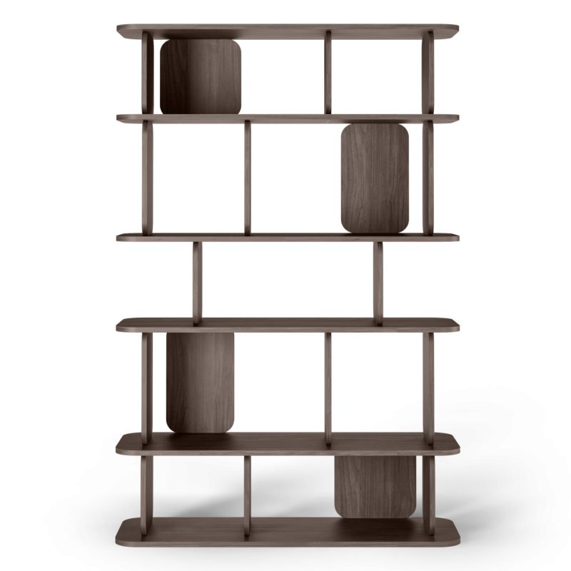 Fonticelle bokhylle – mørk eik med avrundede kanter, 5 hyller