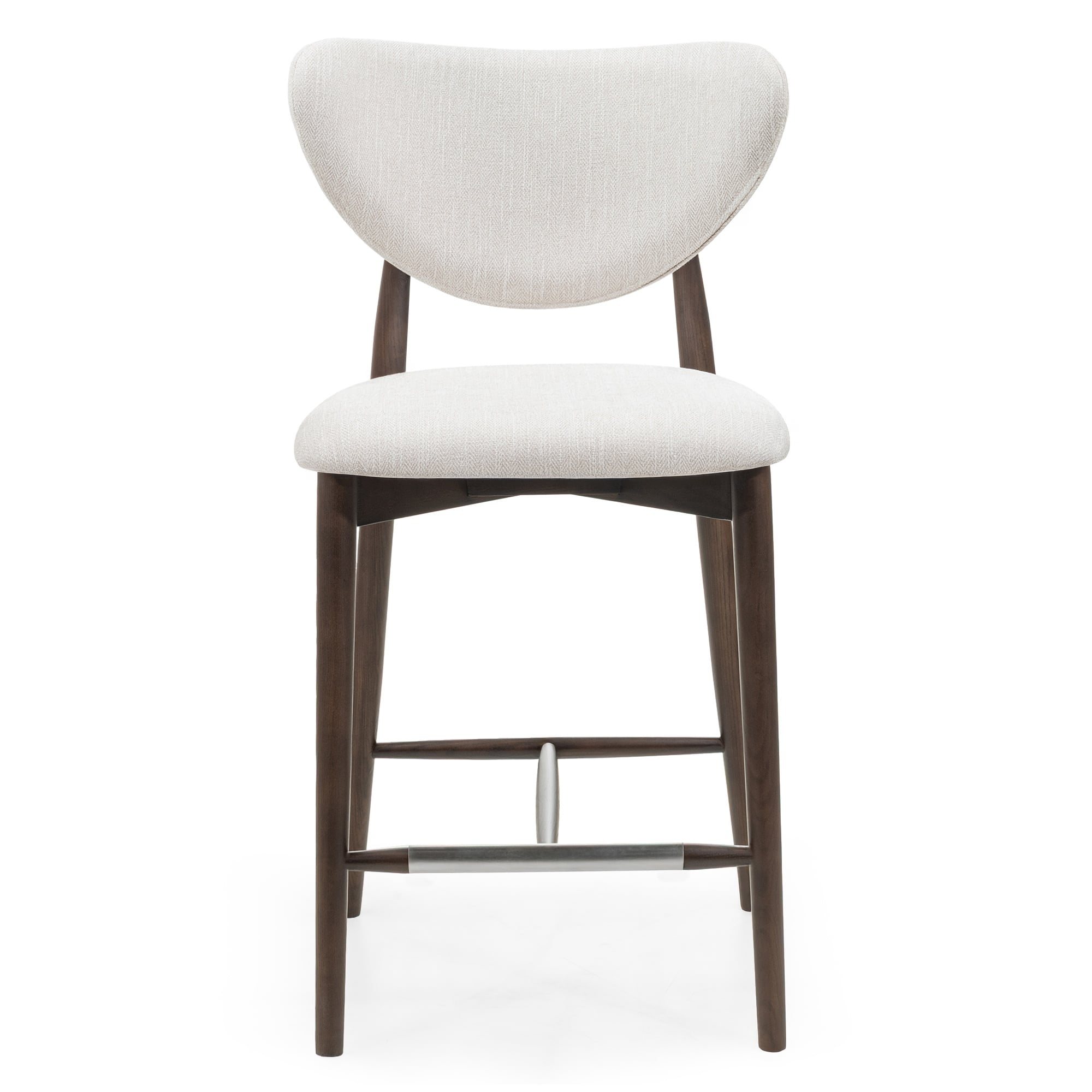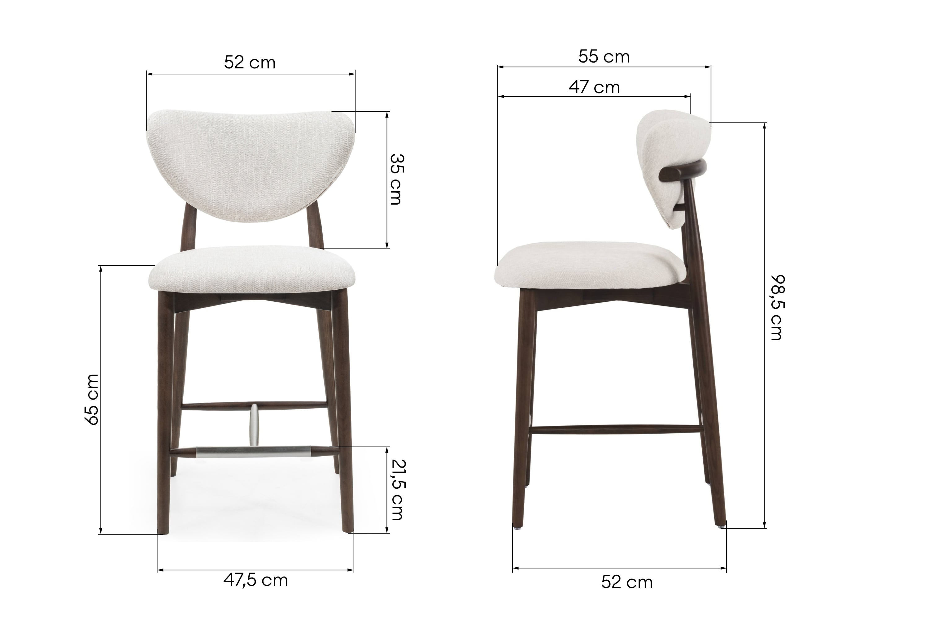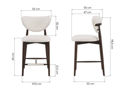 Den ergonomiske ryggstøtten sikrer god støtte, og den integrerte metallfotstøtten gir ekstra komfort under bruk. Stolen passer perfekt til både moderne og klassiske interiører og er ideell for bruk ved kjøkkenøy, bardisk eller høye spisebord.