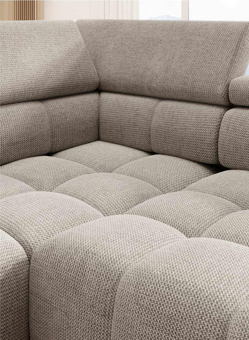 Bull L er en sofamodell som umiddelbart fanger oppmerksomheten med sitt markante, puffete design og moderne uttrykk. Her får du en romslig hjørnesofa med nydelig tekstur, perfekt for deg som ønsker maksimal komfort uten å gå på kompromiss med stil.