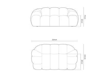 Den tiltrekker seg oppmerksomhet med sin uvanlige form og enestående komfort. De sjenerøse, myke ryggstøttene og armlenene, laget av materialer av høyeste kvalitet, omfavner deg i en komfort som er vanskelig å sammenligne med noe annet. Hvert eneste detalj på sofaen er nøye utformet for å sikre en estetisk og praktisk opplevelse. Det nøytrale fargevalget gjør at sofaen passer inn i ethvert interiør, og tilfører både klasse og stil.