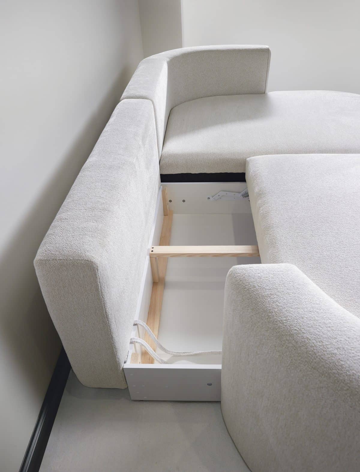 FIORE – Du kan ikke ignorere denne modellen. Til tross for sin enkle form, skiller den seg definitivt ut blant andre hjørnesofaer. Den avrundede ottomanen og setet gjør at FIORE passer perfekt inn i de siste interiørtrendene. En ekstra fordel med denne modellen er en skjult beholder som kan romme et teppe eller et sett med sengetøy. Denne modellen har en sovedel med en soveflate på 135×215 cm, noe som er en ekstra fordel hvis du har gjester på besøk.