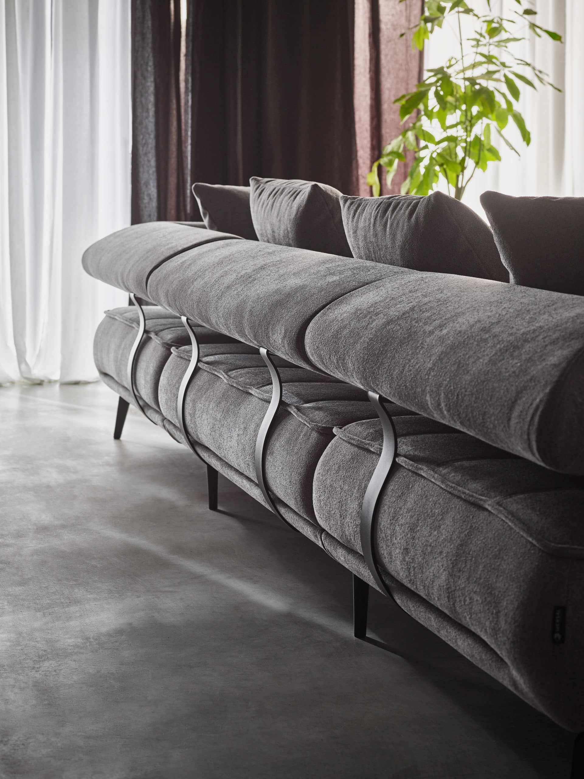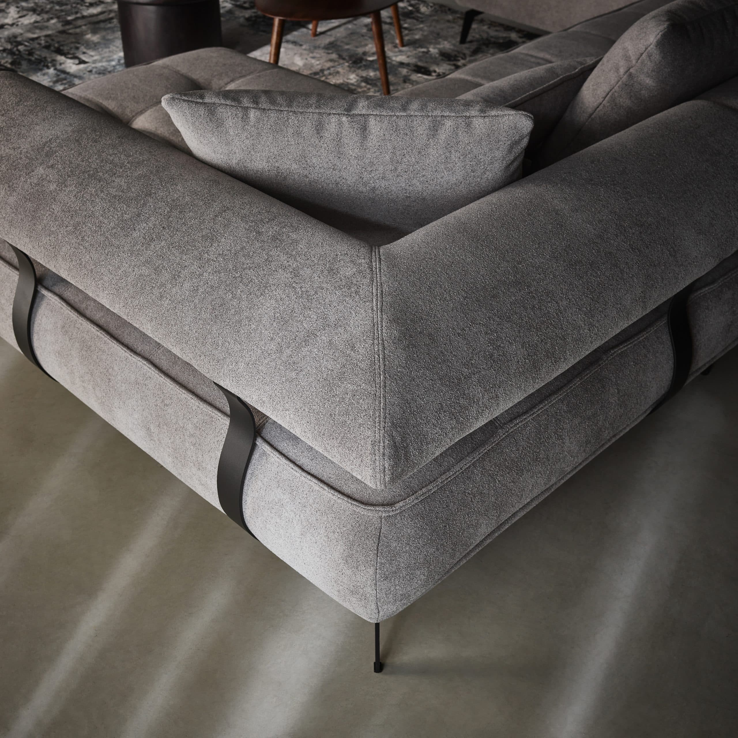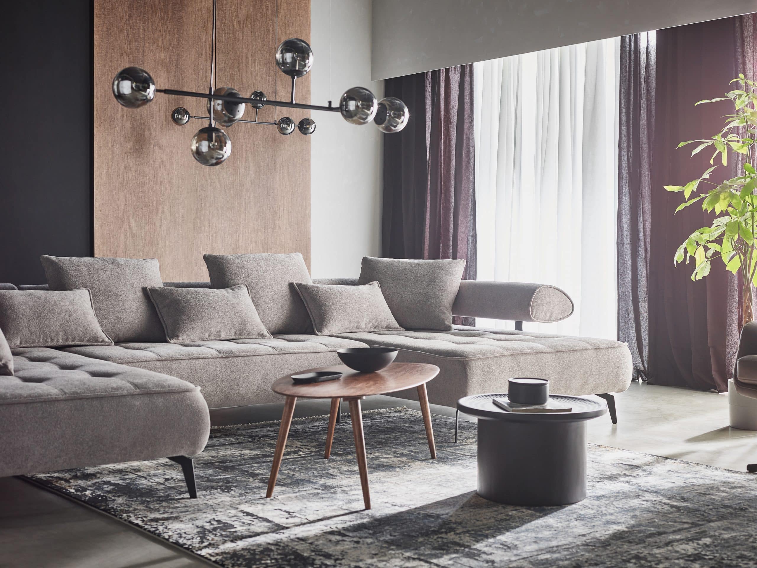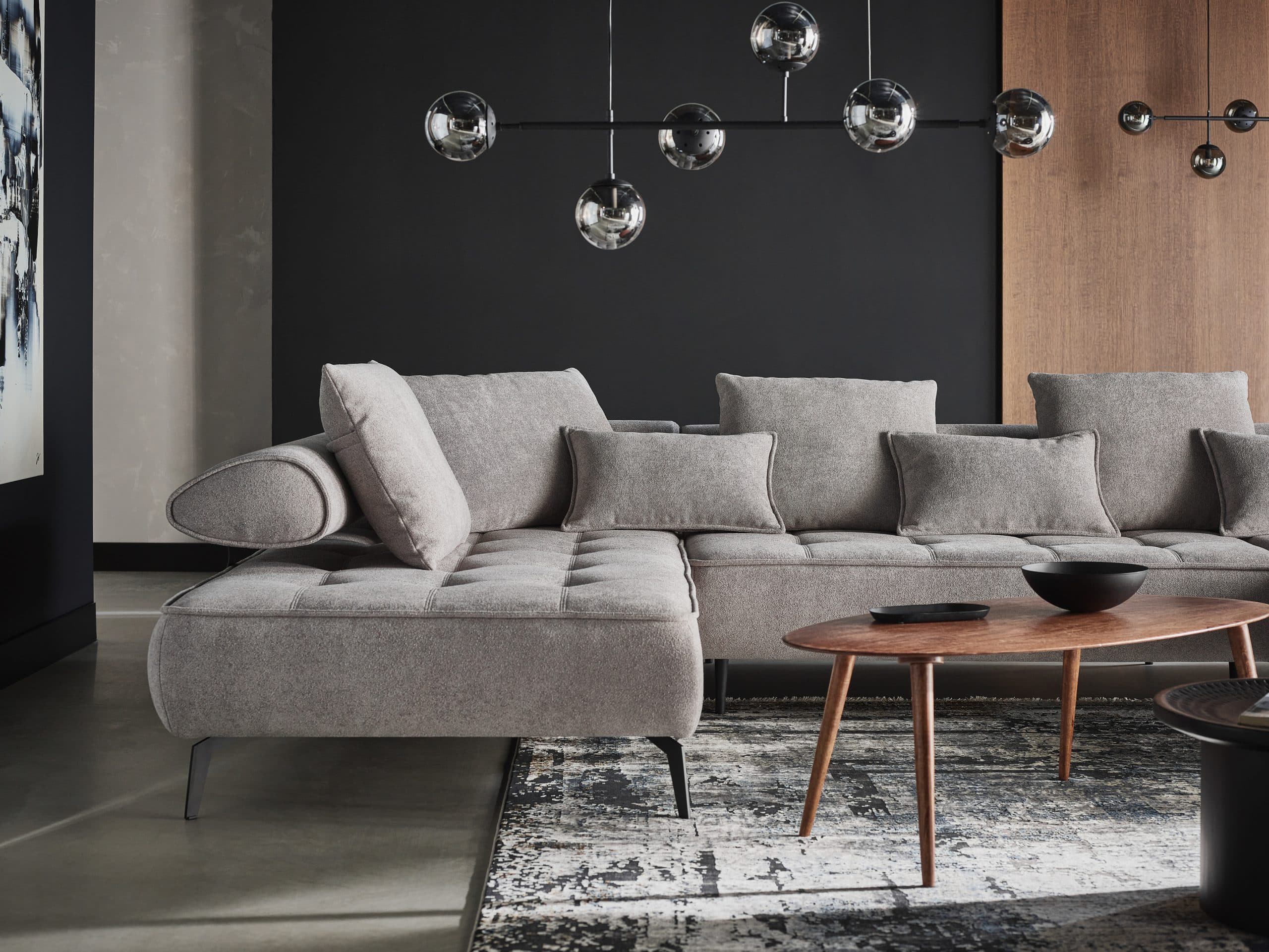 En moderne myk hjørnesofa som står på høye, elegante ben. Elektrisk justering av setedybden lar deg tilpasse hvileposisjonen etter individuelle behov, og sikrer det høyeste nivået av komfort. Modellen passer perfekt inn i moderne interiører. Med karakteristiske ryggstøtter og et sett med puter, blir SELEDO det iøynefallende elementet i ethvert stuerom og vil se flott ut i en sentral posisjon, da det er en frittstående hjørnesofa.