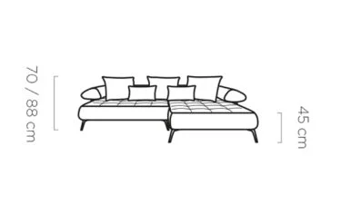 En moderne myk hjørnesofa som står på høye, elegante ben. Elektrisk justering av setedybden lar deg tilpasse hvileposisjonen etter individuelle behov, og sikrer det høyeste nivået av komfort. Modellen passer perfekt inn i moderne interiører. Med karakteristiske ryggstøtter og et sett med puter, blir SELEDO det iøynefallende elementet i ethvert stuerom og vil se flott ut i en sentral posisjon, da det er en frittstående hjørnesofa.