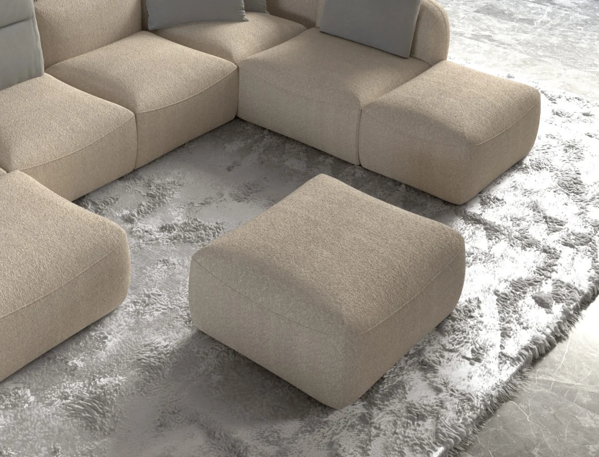 Poufen vil være en unik dekorasjon i enhver stue, og i kombinasjon med hjørnesofaen fra samme kolleksjon vil den gi interiøret en koselig karakter.