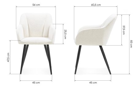 De sorte metallbena tilfører en moderne kontrast og sørger for en solid og stabil konstruksjon. Denne stolen passer perfekt i spisestuen, på kontoret, i stuen eller som en stilfull tilleggstol i hjemmet.
