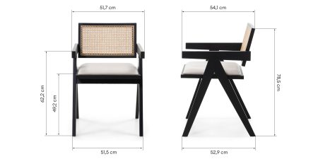 De svarte metallbena gir stolen en elegant kontrast og sikrer stabilitet og langvarig holdbarhet. Denne stolen passer perfekt i spisestuen, på kontoret, i stuen eller som en stilfull tilleggstol i hjemmet.