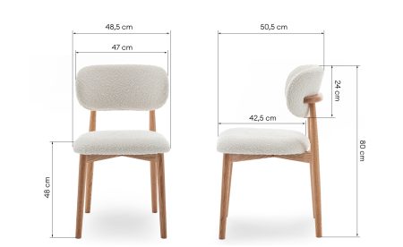 Den ergonomiske ryggstøtten sørger for ekstra støtte og komfort, mens de solide bena gir stolen en stabil og holdbar konstruksjon. Denne stolen passer perfekt i spisestuen, på kontoret, i stuen eller som en stilfull tilleggstol i hjemmet.