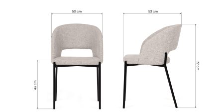 De matte, sorte metallbena gir stolen en moderne kontrast og en solid konstruksjon, som gjør den både stilfull og stabil. Perfekt for spisestuer, kontor, stue eller som en ekstra stol i hjemmet.