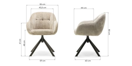 Den svingbare stolen Miguel kombinerer moderne design med komfort, og tilbyr et mykt sete og ryggstøtte trukket i et behagelig tekstil.