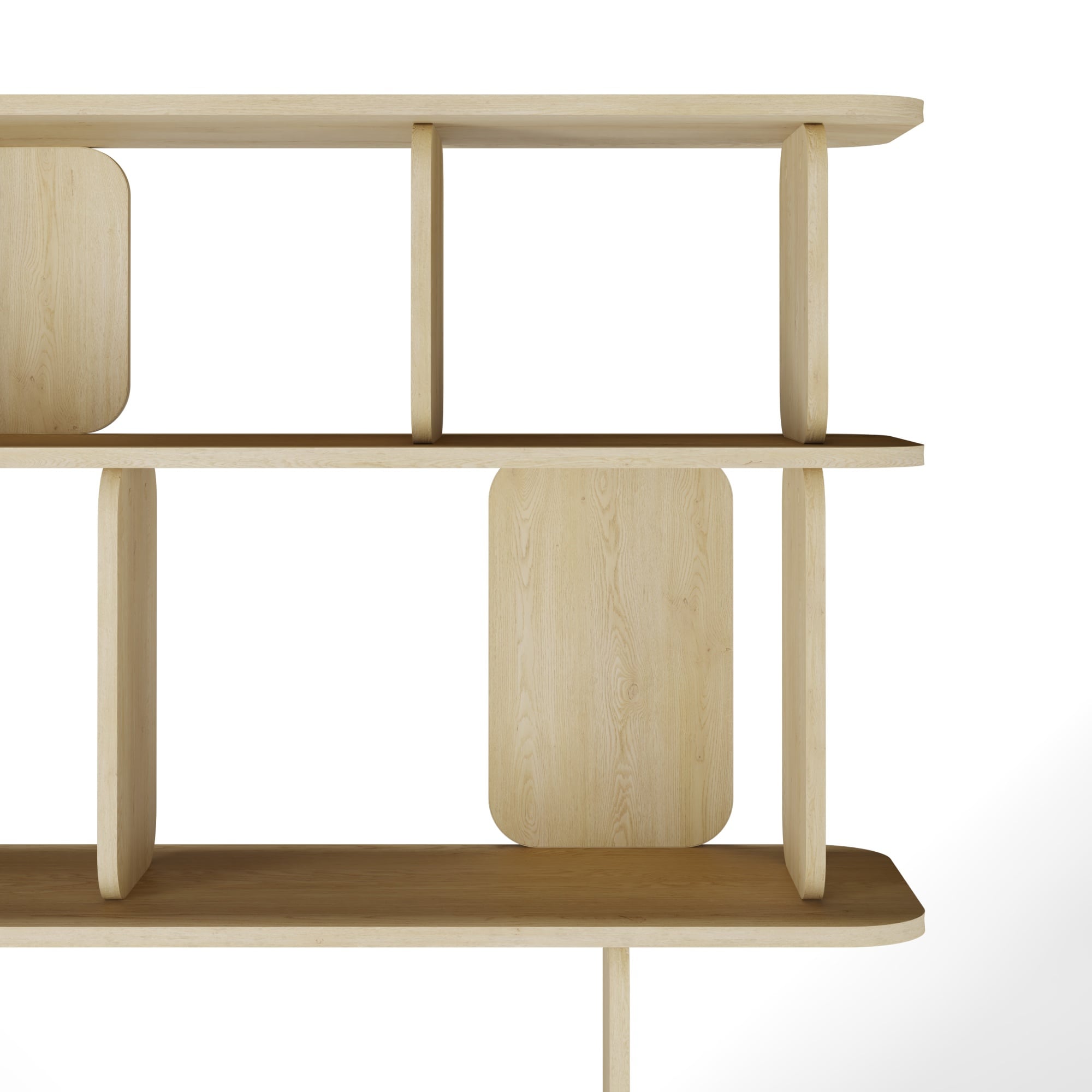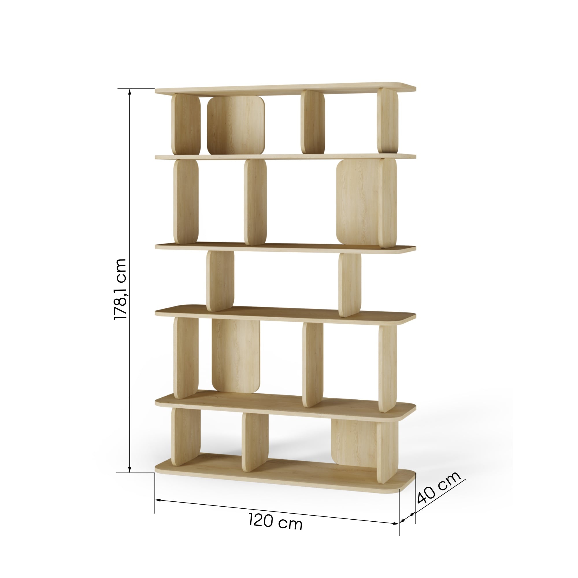 Reolen er romslig, med åpne hyller som gjør det enkelt å vise frem bøker, pyntegjenstander eller praktisk oppbevaring. Den fungerer godt i stue, hjemmekontor eller spisestue – og kan gjerne kombineres med andre møbler i samme serie for en helhetlig stil.