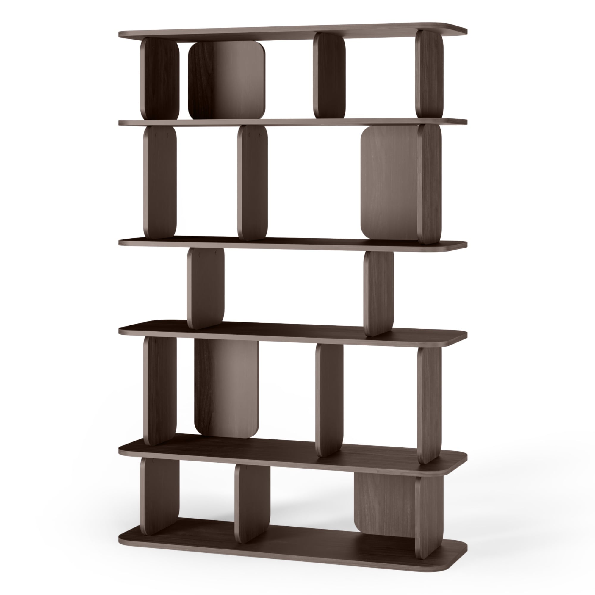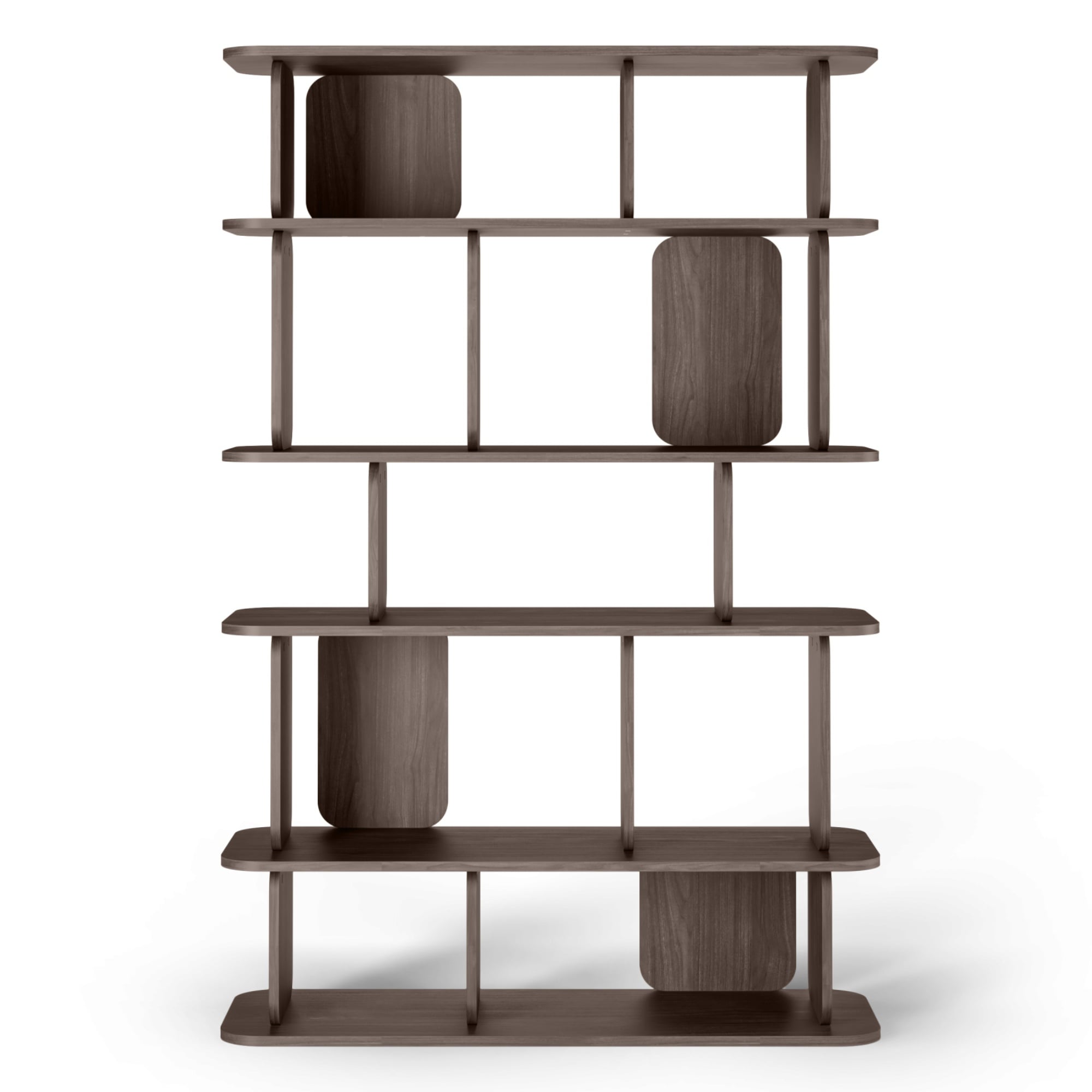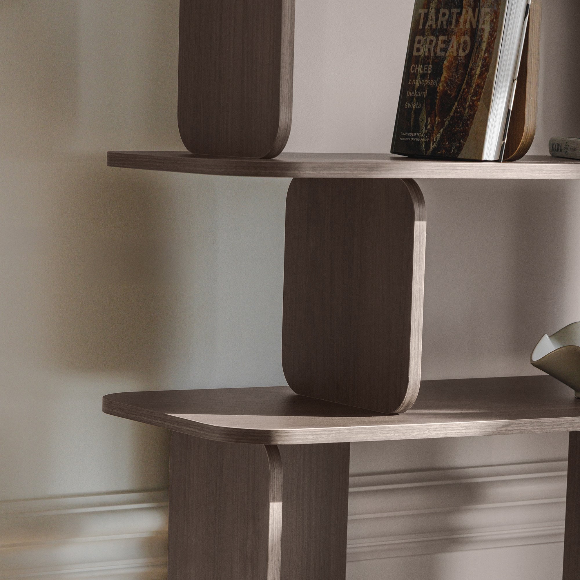 Med sin kombinasjon av høyde og bredde tilbyr TULUMO hele seksjoner med åpne hyller til bøker, kunst, dekor eller praktisk oppbevaring – enten i stue, hjemmekontor eller spisestue. Den mørke trefineren gir et eksklusivt preg, og den slanke konstruksjonen gjør at møbelet fremstår lett og balansert, til tross for sin romslighet.